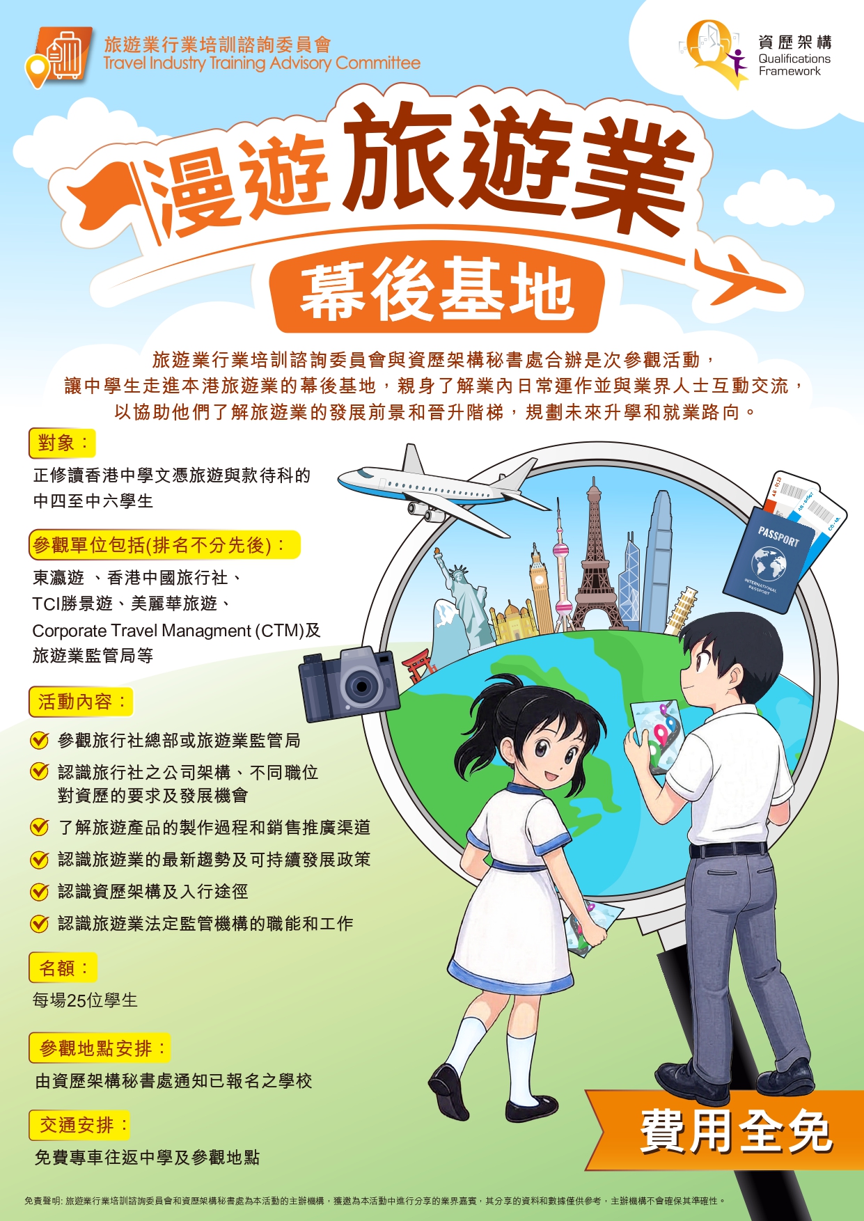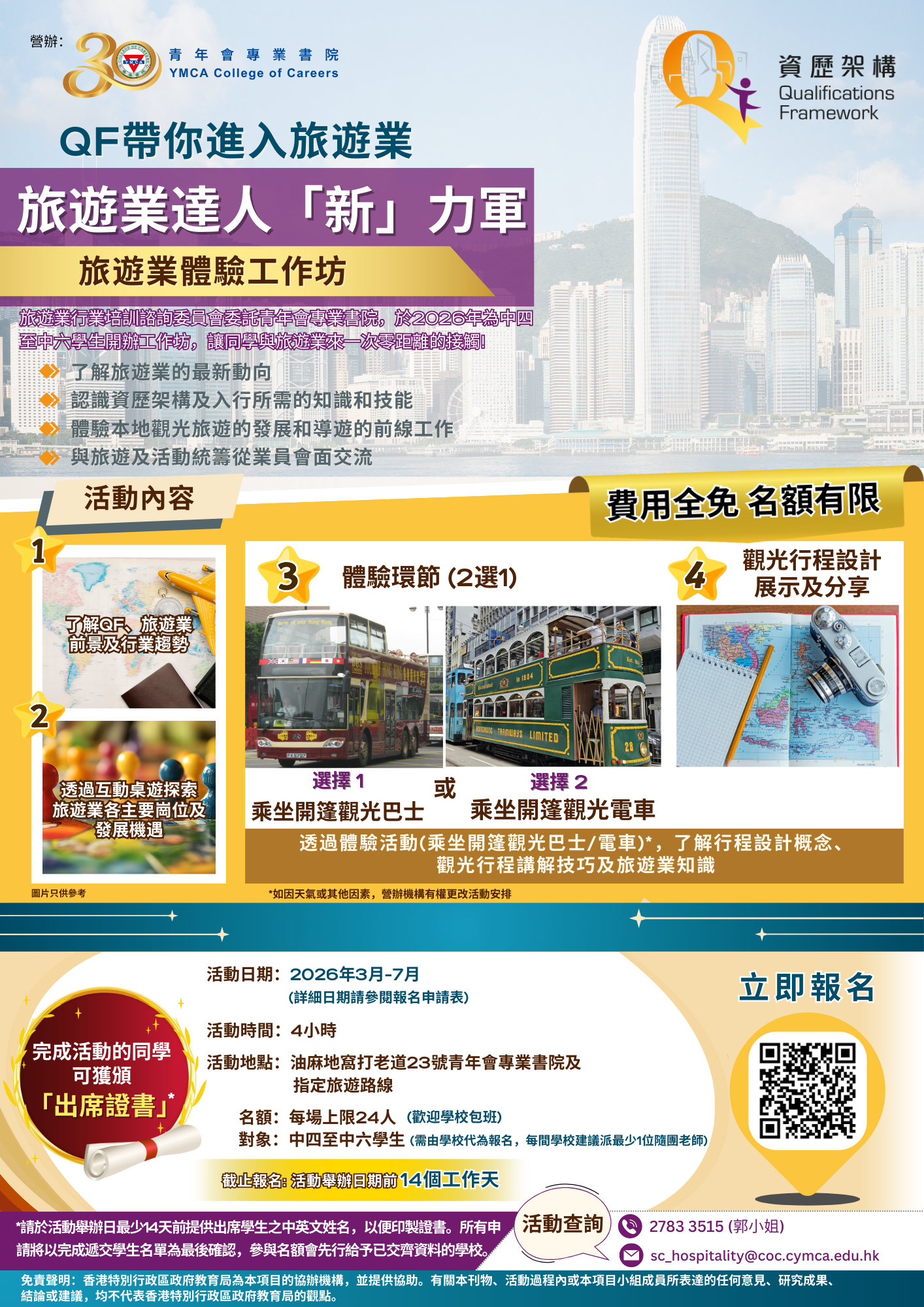 旅遊業是香港的主要經濟支柱之一,設計和開拓展本港及國際特色的旅遊產品及項目,以及開拓多元化的新客源,均為旅遊業長遠發展的重點。隨著新興市場的崛起及各種經營環境的急速變化,旅遊業必須持續提升管理能力和人才質素,以應付多方面的挑戰。教育局協助旅遊業推行資歷架構,旨在透過鼓勵持續進修、終身學習,提升從業員的能力水平,推動行業持續發展及專業化,並藉此吸引更多人才入行。